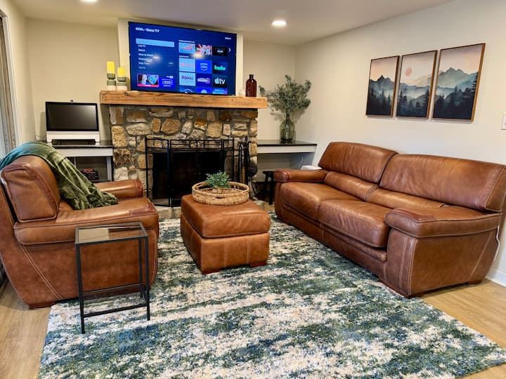 พักผ่อนอย่างสบายใจในพื้นที่นั่งเล่นแบบเปิดโล่งของเรา โดยไม่รู้สึกตัดขาดจากสิ่งที่เกิดขึ้นในห้องครัวหรือด้านนอกบนดาดฟ้า! เรามีโซฟาหนังขนาดใหญ่หรูหราเก้าอี้หนังขนาดใหญ่และออตโตมันและสมาร์ททีวีอีกเครื่องในห้องนี้ให้คุณเพลิดเพลิน บอร์ดเกมที่หลากหลายและเวิร์คสเตชั่นเฉพาะพร้อมจอภาพเพื่อให้แน่ใจว่าคุณสามารถทำงานและเล่นได้ตามต้องการ (โปรดทราบว่าเนื่องจากเฮอริเคนเฮเลน เตาผิงจึงไม่สามารถใช้งานได้ในขณะนี้)