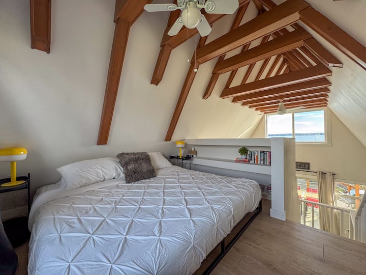บ้านทรงเอเฟรมวิวอ่าว + เตียงคิงไซส์ | เดิน 5 นาทีถึงชายหาด