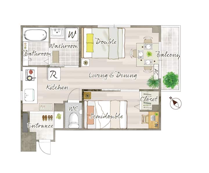 อพาร์ทเมนท์นี้ตั้งอยู่ในย่านที่อยู่อาศัยอันเงียบสงบห่างจากสายโทเอมิตะและสถานีนิชิสุกาโม 8 นาที