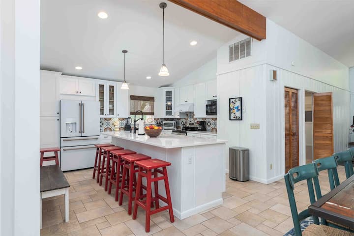 ห้องสวีทนี้ประกอบด้วยส่วนหลังของบังกะโล ซึ่งรวมถึงห้องนอนใหญ่และห้องนอนสองชั้น ห้องครัว พื้นที่นั่งเล่น และห้องซักรีด เราชอบออกกำลังกายทุกวันด้วยการยกน้ำหนักและโยคะ เดินเล่นชายหาดยามอรุณรุ่งและปั่นจักรยานบนชายหาดและเส้นทาง