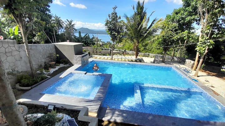 สระว่ายน้ำส่วนตัวที่มองเห็นทะเลสาบตาล
