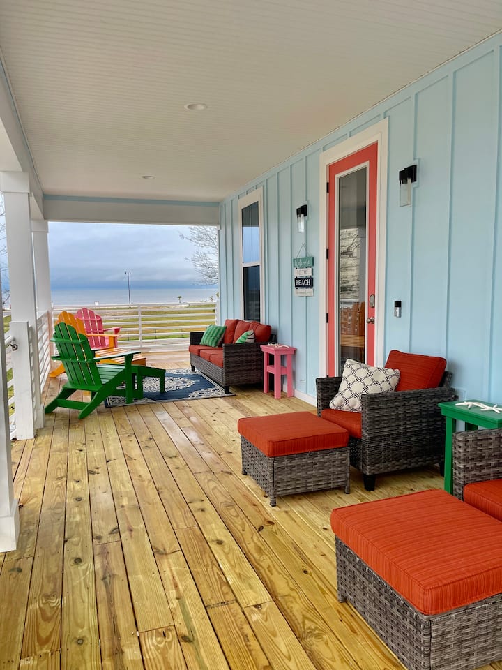 ►ลานรอบๆขนาดใหญ่มีที่นั่งนอกชานที่สะดวกสบายเก้าอี้ Adirondack โต๊ะวางเท้าและที่วางเท้า