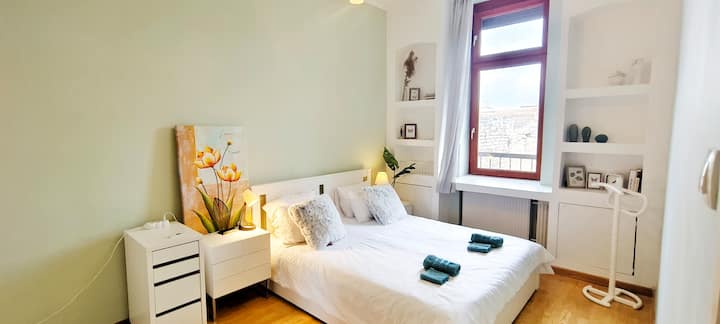 ที่พักใหม่ที่กว้างขวางและเงียบสงบในเมืองที่คึกคัก ที่พักพิงขนาด 63 ตร.ม. มีลิฟต์และการตกแต่งภายในที่เงียบสงบเพื่อความเป็นส่วนตัว มีการจัดวางที่นอนสำหรับผู้เข้าพัก 4 คน แต่สามารถรองรับได้ถึง 6 คน อยู่ห่างจากโบสถ์และบาร์ซากที่เป็นเอกลักษณ์บนถนนใกล้เคียง เพลิดเพลินกับการเดินทางไปยังสถานที่ท่องเที่ยวชั้นนำและสถานบันเทิงยามค่ำคืนที่มีชีวิตชีวาได้อย่างง่ายดายเพียงเดินไม่ไกล ในขณะที่การเชื่อมต่อการขนส่งที่ยอดเยี่ยม (รวมถึงรถไฟใต้ดิน 100E และ M3 เดินเพียง 10 นาที และรถไฟใต้ดิน M2 เดินเพียง 5 นาที) ทำให้การสำรวจเมืองเป็นไปอย่างราบรื่น