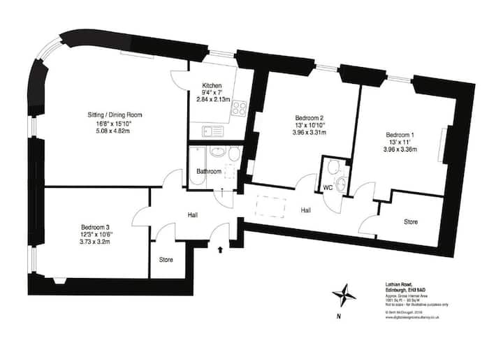บ้านแบบคลาสสิกสไตล์ศตวรรษที่ 19 ในเอดินบะระ - 3 ห้องนอน