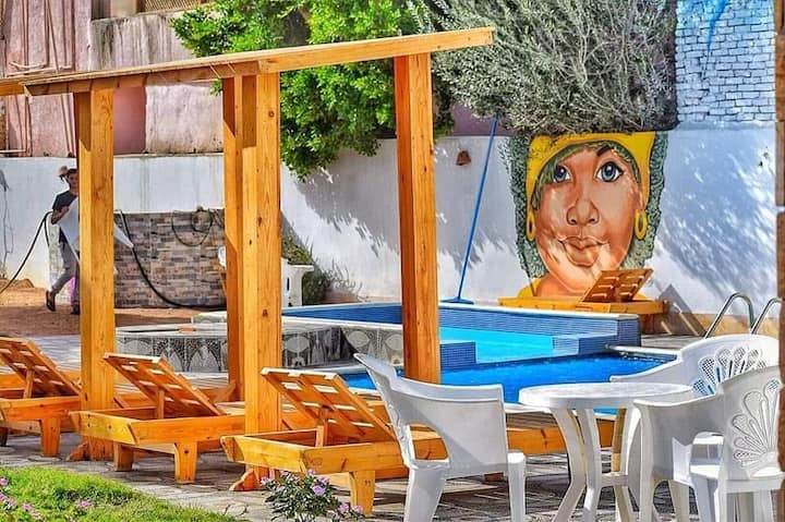 นี่เป็นหนึ่งในที่พักไม่กี่แห่งของย่านนี้ที่มีสระว่ายน้ำ