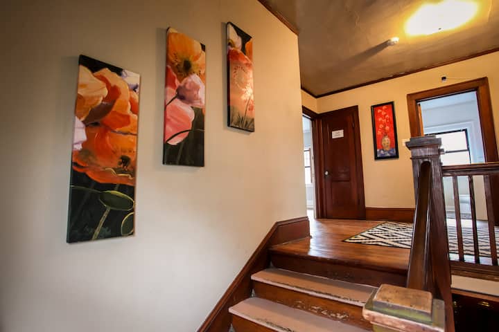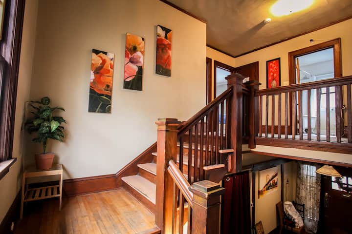 บ้าน Airbnb ของเราสร้างขึ้นในปี 1928 เต็มไปด้วยเอกลักษณ์และความอบอุ่นแม้ว่ามันอาจแสดงให้เห็นถึงอายุของมันด้วยพื้นและอุปกรณ์ดั้งเดิมที่ส่งเสียงดัง แต่เราปรับปรุงและทาสีบ้านใหม่เป็นประจำเพื่อให้รู้สึกดีในการให้สภาพแวดล้อมที่สะอาดและสะดวกสบายแก่ผู้เข้าพัก