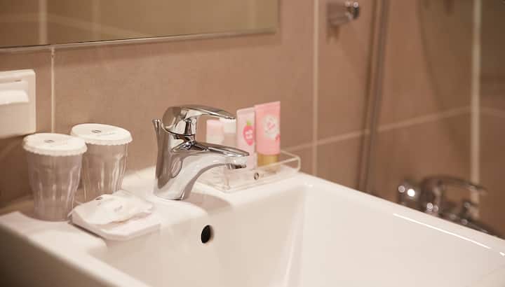 ตั้งอยู่ใจกลางเมืองมยองดง สกายพาร์คโฮเทลสาขาที่ 2 สะอาดและปลอดภัย ห้องดีลักซ์ทวินใหม่