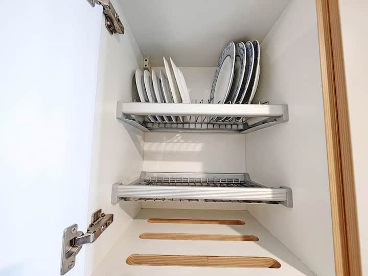 - อุปกรณ์ทำอาหารและรับประทานอาหารสำหรับ 8 คน (เตาคู่เครื่องปิ้งขนมปังหม้อหุงข้าวเตาอบกาต้มน้ำไมโครเวฟอุปกรณ์รับประทานอาหารเครื่องซักผ้าเครื่องกรองกาแฟ …)
