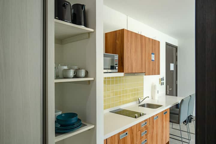 นี่เป็นหนึ่งในที่พักไม่กี่แห่งของย่านนี้ที่มีสระว่ายน้ำ