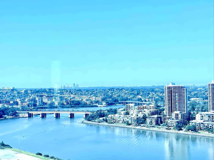 คอนโด 2 ห้องนอนวิวเมืองและสะพานที่น่าทึ่ง (P)