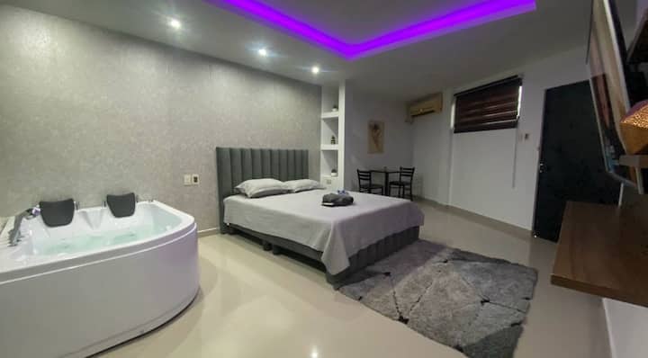 ห้องสวีทที่สวยงามพร้อมจากุซซี่และที่จอดรถส่วนตัว