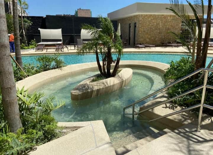นี่เป็นหนึ่งในที่พักไม่กี่แห่งของย่านนี้ที่มีสระว่ายน้ำ