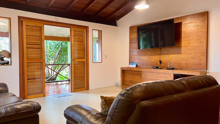 เพลิดเพลินกับช่วงเวลาที่น่าจดจำในบ้านที่กว้างขวาง มีเครื่องปรับอากาศ และอุปกรณ์ครบครัน เพื่อให้มั่นใจถึงความสะดวกสบาย การใช้งานได้จริง และการพักผ่อนได้ตลอดทั้งปี เหมาะสำหรับครอบครัวหรือกลุ่มเพื่อนที่ต้องการพักผ่อนและเพลิดเพลินกับทุกช่วงเวลาอย่างมีสไตล์