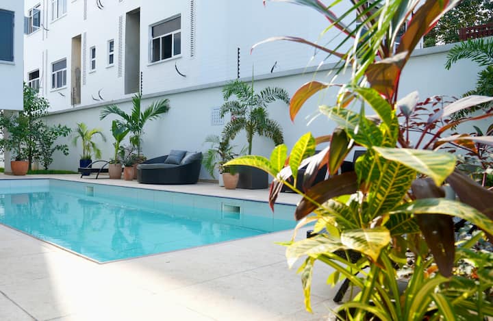 นี่เป็นหนึ่งในที่พักไม่กี่แห่งของย่านนี้ที่มีสระว่ายน้ำ