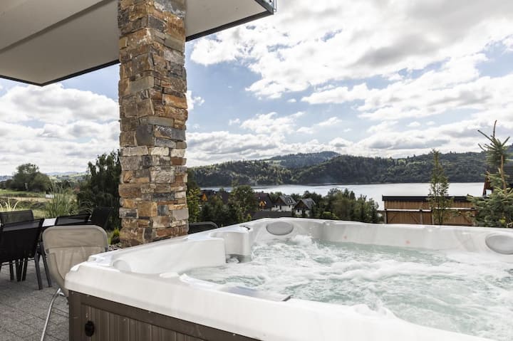 - บ้านพักตากอากาศที่มีที่นั่งกลางแจ้งใน ทะเลสาบซอร์สติน