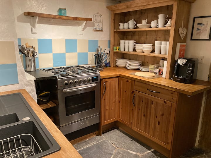 เดินไม่ถึงนาทีจากหาดทรายสีทองในเมืองชายฝั่งที่คึกคักของลูคอร์นวอลล์เป็นทิวดอร์คอทเทจที่มีเอกลักษณ์และได้รับการขึ้นทะเบียนเกรด II