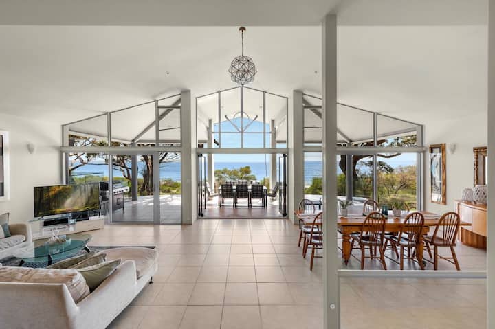 กรอบหน้าต่างจากพื้นจรดเพดานมองเห็นหาดคอลลิงวูดและอื่นๆได้อย่างต่อเนื่อง ตื่นขึ้นมาพบกับน้ำที่ส่องแสงระยิบระยับและหลับไปกับเสียงคลื่น