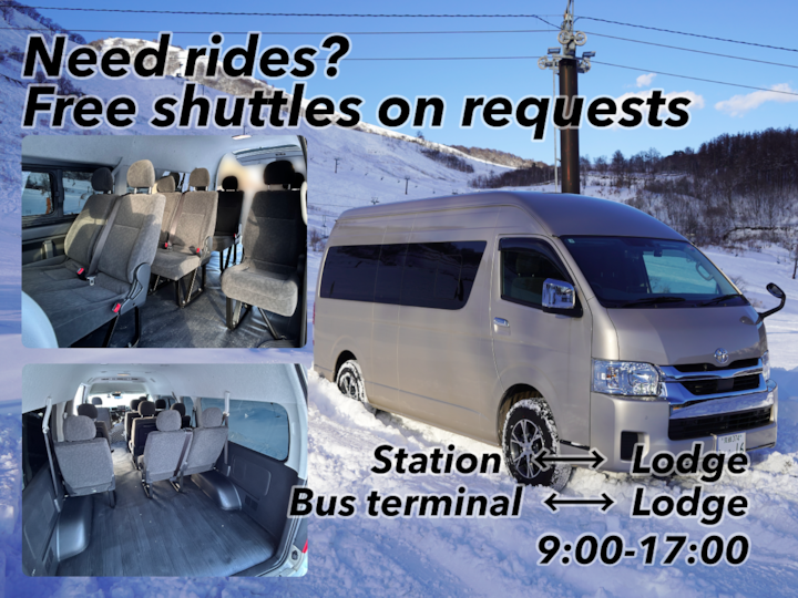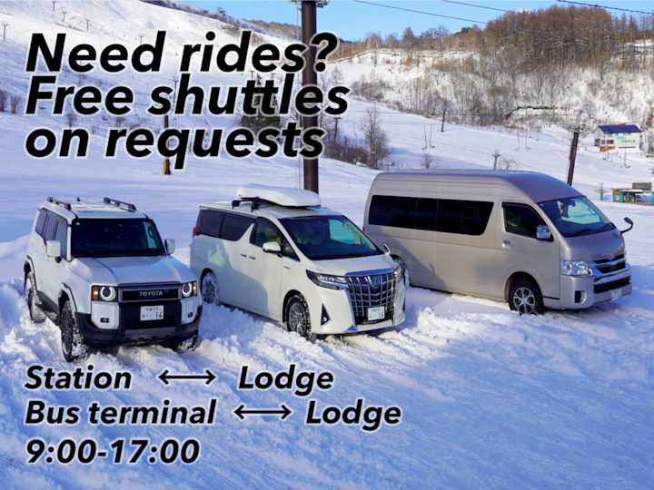 รถรับส่งจำกัดอยู่ที่สถานีรถไฟ Hakuba หรือ Otari Village และสถานีขนส่งซึ่งกำหนดโดย Slopeside Lodge Hakuba