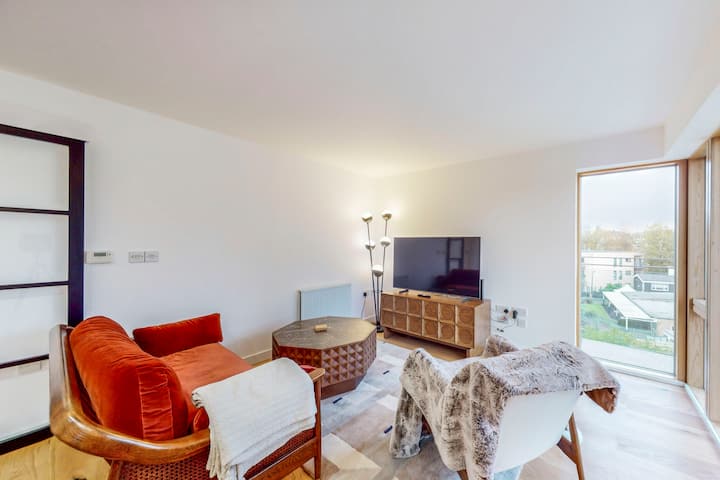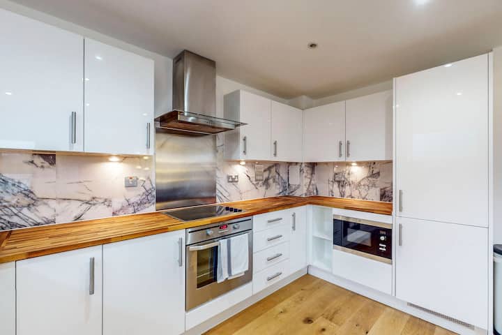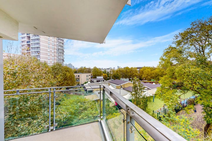 ห้องนอน 2 ห้องที่สว่างและอบอุ่นพร้อมระเบียงวิวในเบอร์มอนด์ซีย์