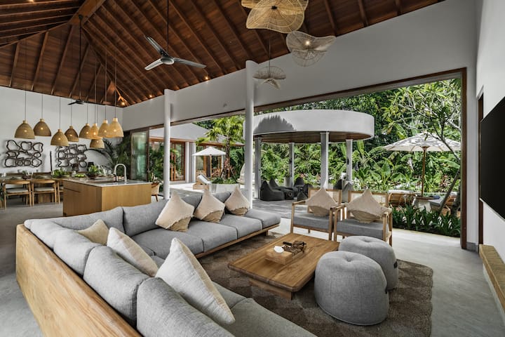 หลบหนีไปยัง The Blue Parrot Villa สถานที่ศักดิ์สิทธิ์ขนาด 6 ห้องนอนที่กว้างขวางตั้งอยู่ท่ามกลางป่าเขียวชอุ่มและทุ่งนาที่มีชีวิตชีวาของอูบุด การผสมผสานที่กลมกลืนของความสะดวกสบายที่ทันสมัยและความงามตามธรรมชาติที่น่าทึ่งนี้ให้บรรยากาศที่สมบูรณ์แบบสำหรับการพักผ่อนกับครอบครัวสถานที่พักผ่อนเพื่อสุขภาพหรือการพักผ่อนเป็นกลุ่ม