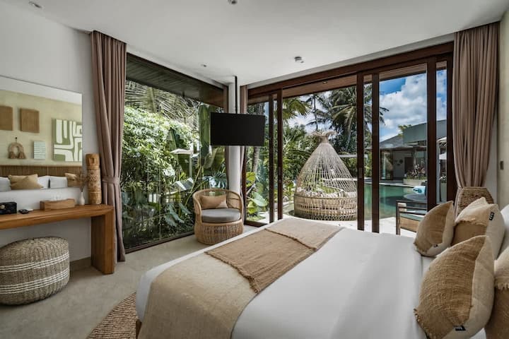 เสน่ห์ทางธรรมชาติ: วิลล่าของเราโอบรับความงามเขตร้อนของบาหลีที่ซึ่งเสียงของคนรักธรรมชาติและแมลงสร้างบรรยากาศที่เงียบสงบ การออกแบบแบบเปิดอาจต้อนรับสัตว์ป่าเป็นครั้งคราวแม้จะมีการควบคุมศัตรูพืชเป็นประจำ ตุ๊กแกสัญลักษณ์แห่งความโชคดีในวัฒนธรรมบาหลีและสิ่งมีชีวิตอื่นๆมีความสำคัญต่อระบบนิเวศ