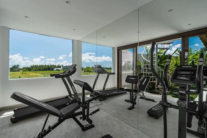 ออกกำลังกายอย่างกระฉับกระเฉงในห้องออกกำลังกายส่วนตัวของ Blue Parrot Villa เหมาะสำหรับผู้ที่ชื่นชอบการออกกำลังกายที่ต้องการรักษากิจวัตรประจำวันขณะพักผ่อน เพื่อความสะดวกยิ่งขึ้นฝักบัวอาบน้ำกลางแจ้งตั้งอยู่ใกล้สระว่ายน้ำและพื้นที่ออกกำลังกายเสริมด้วยห้องสุขาของผู้เข้าพักเพื่อความสะดวกสบายสูงสุด