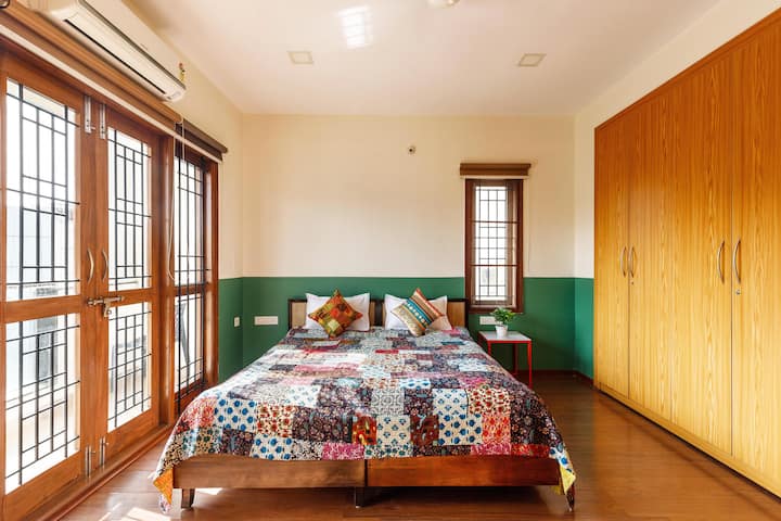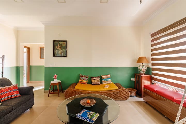 A Tastefully designed residence for the millennial traveler. The space is within the 4th floor of an apartment with windows and balcony for plenty of Airy, open spaces. The house is charming & cozy with all the basis details with respect to bed, Wi-Fi and hygiene paid utmost attention to. It is located in the heart of Bangalore. Our space is a one-of-a-kind neat, clean, modern house with all amenities including Completely furnished rooms with modern en-suite bathrooms. The house and its rooms are large. The living room is a perfect place for sitting, reading, eating, doing nothing at all.
