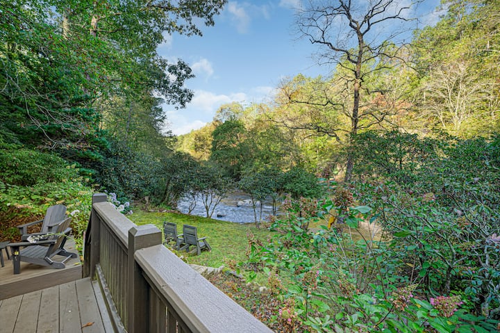 ที่พักริมแม่น้ำพร้อมอ่างน้ำร้อนและห้องเล่นเกม