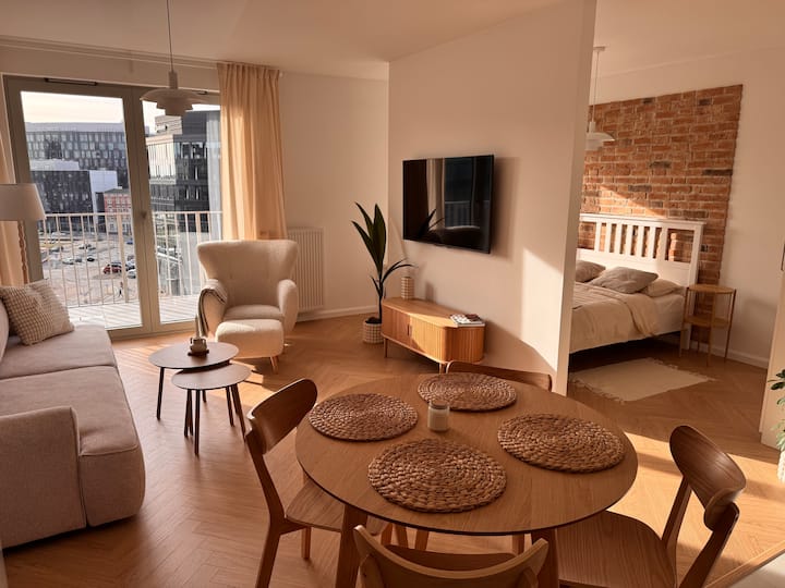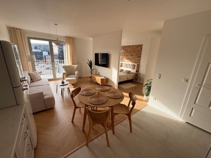 เราขอเชิญคุณมาที่อพาร์ทเมนท์ที่สะดวกสบายของเราตั้งอยู่ใจกลางเขต Młode Miasto (อู่ต่อเรือ) บนถนน Jerzy Popiełuszki, vis-a-vis European Solidarity Center อพาร์ทเมนท์ของเรามีพื้นที่ที่สะดวกสบายและใช้งานได้ดีซึ่งจะทำให้คุณรู้สึกเหมือนอยู่บ้าน