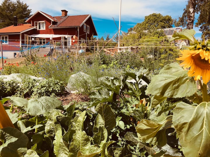 เราย้ายมาอยู่กับครอบครัวทัตตี้ฉันและลูกๆ (10 -16years) ไปสวีเดนเมื่อ 7 ปีที่แล้วเพื่อหลบหนีจากสก็อตแลนด์เพื่อหลบฝนและสีเทาและสร้างชีวิตที่เรียบง่ายขึ้นในประเทศที่มีฤดูกาลที่เติบโตขึ้นเรื่อยๆ เราได้แปลงพื้นที่ของห้องใต้หลังคาเก่าให้เป็นห้องพักแบบเบดแอนด์เบรคฟาสท์เพื่อเสนอประเภทที่พักที่เราเองต้องการ