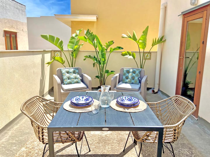 - บ้านพักตากอากาศที่มีที่นั่งกลางแจ้งใน Trapani