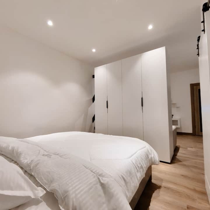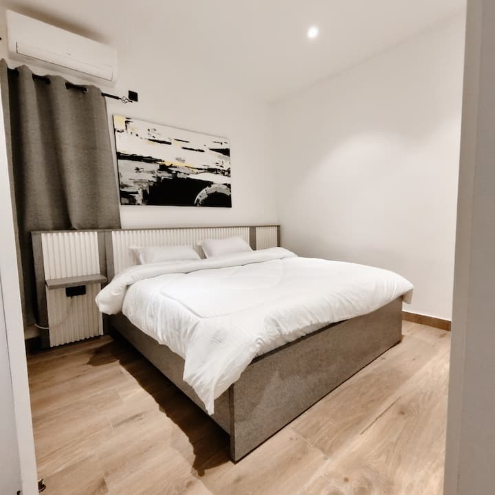 พื้นที่นอนได้รับการออกแบบมาเพื่อความสะดวกสบายสูงสุด มีเตียงควีนไซส์หรูหราพร้อมผ้าปูที่นอนระดับพรีเมียมและหมอนหนานุ่มเพื่อให้นอนหลับสบาย การออกแบบสไตล์มินิมอลสร้างบรรยากาศที่เงียบสงบเหมาะสำหรับการผ่อนคลายหลังวันที่วุ่นวาย