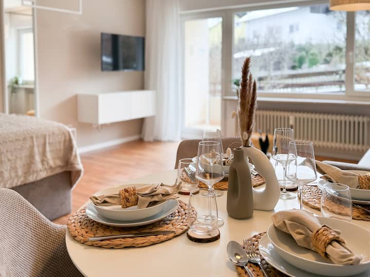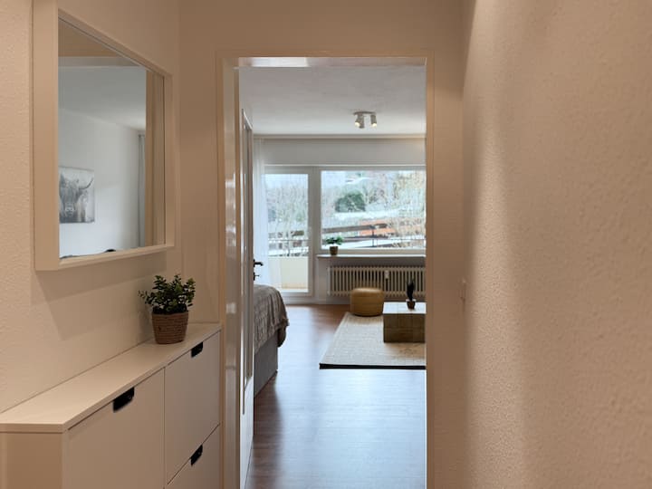 สตูดิโอในแบล็คฟอเรสต์ | ระเบียง | ป่า + พื้นที่สำหรับปิ้งย่าง