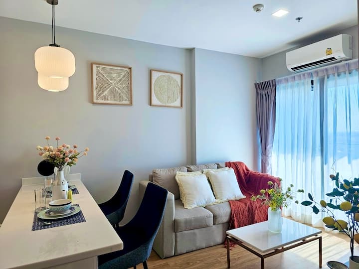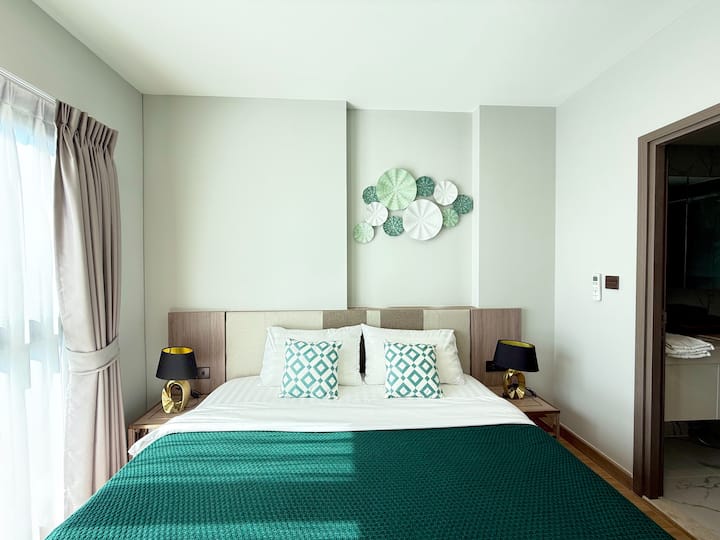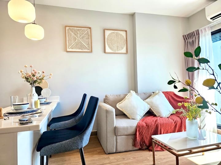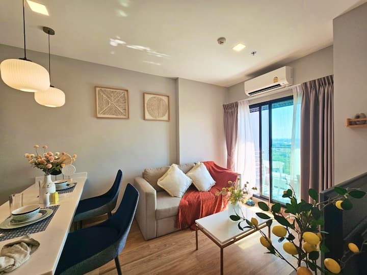 อพาร์ทเมนท์ทันสมัยน่ารักใกล้ไนท์บาซาร์ เราชอบวิวจากที่พักเป็นพิเศษและโดยเฉพาะดาดฟ้า
