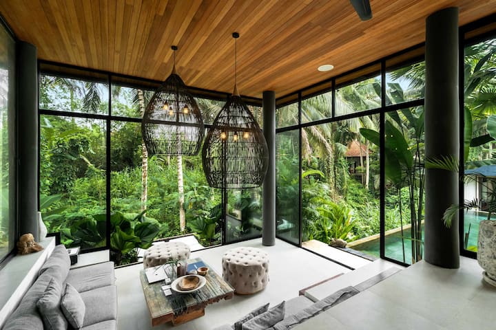 วิลล่าที่ออกแบบมาเพื่อให้คุณได้สัมผัสกับธรรมชาติ มีหน้าต่างสูงจากพื้นจรดเพดานและวิวป่าไม่มีสิ่งกีดขวางตลอดทั้งวิลล่า ก้าวลงจากห้องนั่งเล่นไปยังสระว่ายน้ำอินฟินิตี้ที่มองเห็นวิวป่า สวรรค์บนดินอย่างแท้จริง