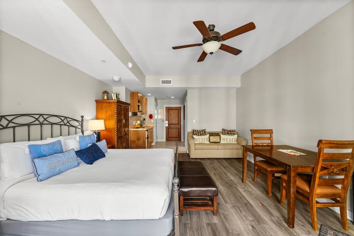 สตูดิโอที่⬥กว้างขวางและสะดวกสบาย – มีเตียงคิงไซส์หรูหราและโซฟาปรับนอนขนาดควีนไซส์เหมาะสำหรับคู่รักหรือครอบครัวขนาดเล็ก