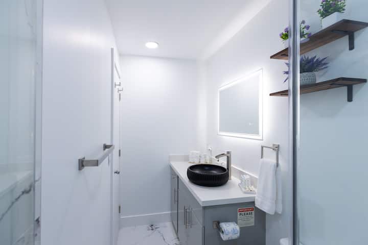 ห้องน้ำ🛁 ส่วนตัว: เพิ่งปรับปรุงใหม่มีไดร์เป่าผมผ้าเช็ดตัวและสิ่งของจำเป็นทั้งหมด