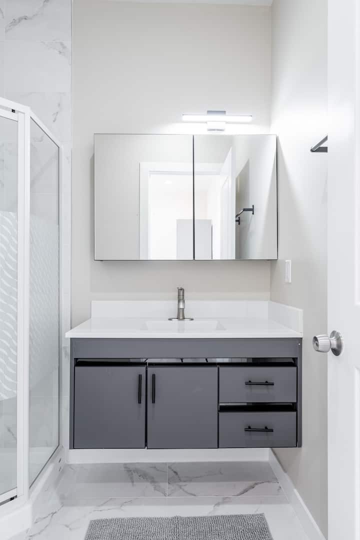 เตียงส่วนตัวสวยงามพร้อมห้องน้ำส่วนตัว