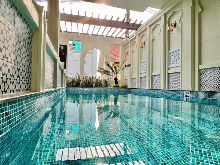นี่เป็นหนึ่งในที่พักไม่กี่แห่งของย่านนี้ที่มีสระว่ายน้ำ