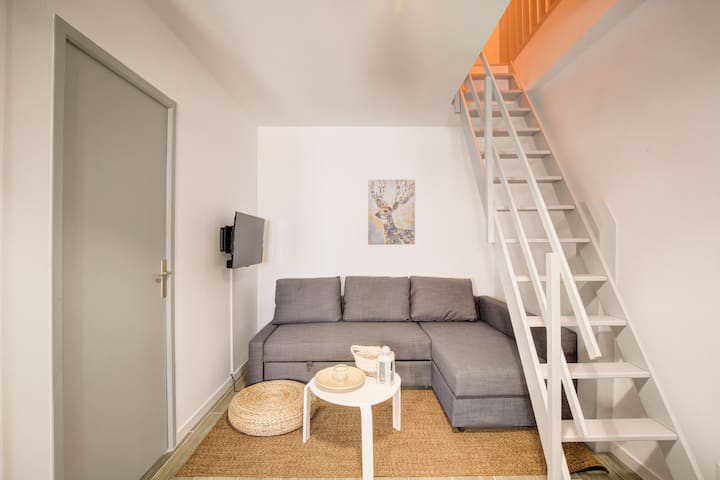 2 ห้องนอน ห้องหนึ่งมีเครื่องปรับอากาศ มีเตียงจริง (140*190) แต่พื้นที่ไม่พอให้เราติดตั้งชั้นวางของ พื้นที่นั่งเล่น 2 ห้องแต่ละห้องมีโซฟาเบด 2 ที่นั่ง ทีวีที่เชื่อมต่อกับเน็ตฟลิกซ์และ Wi-Fi ที่มีคุณภาพ เรามีผ้าเช็ดตัวและผ้าปูที่นอนให้ และบ้านได้รับการทำความสะอาดและเตรียมพร้อมก่อนที่คุณจะมาถึง