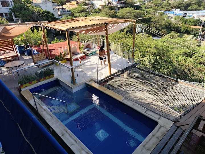 นี่เป็นหนึ่งในที่พักไม่กี่แห่งของย่านนี้ที่มีสระว่ายน้ำ