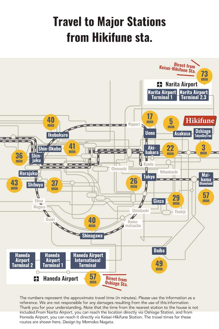 เพียง 8 นาทีจากโตเกียวสกายทรีและ 3 นาทีถึงอาซากุสะเดินทางไปชินจูกุและชิบูย่าได้สะดวกเหมาะสำหรับการท่องเที่ยว