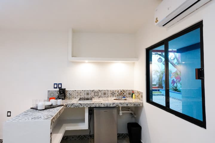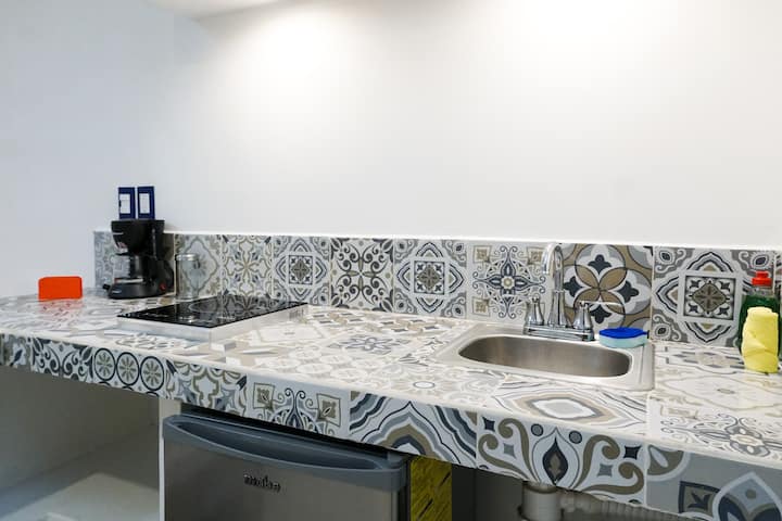 ห้องสตูดิโอสำหรับ 3 คนพร้อมห้องครัวเล็กๆ ในเมืองปลายาเดลการ์เมน