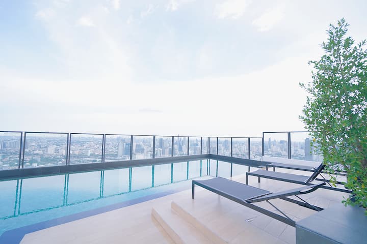 รามา 9 ห้องนอนขนาด 40 ตร.ม. พร้อมอ่างอาบน้ำและระเบียง LOFT431/พักได้ 2 คน/สระว่ายน้ำ/ใกล้ RCA/ใกล้ตลาดกลางคืนรถไฟ/ใกล้ทองหล่อ