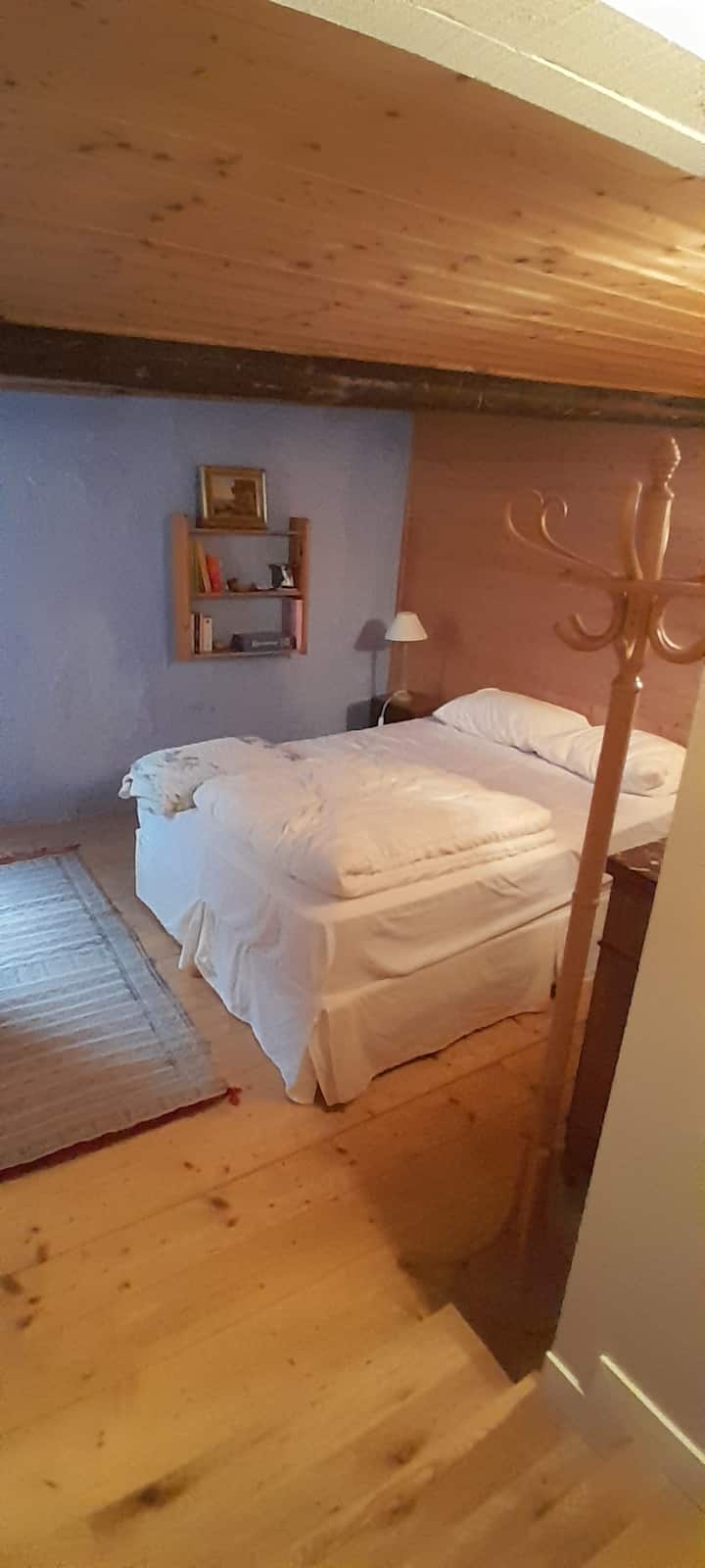 ห้องพักในบ้านที่สร้างด้วยหินและไม้