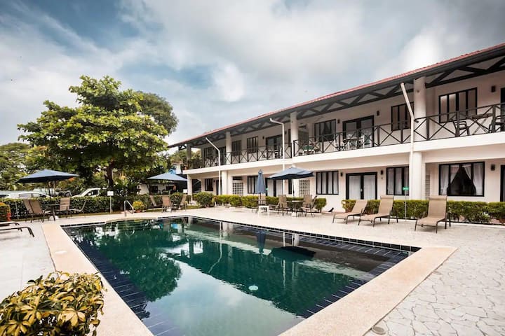 นี่เป็นหนึ่งในที่พักไม่กี่แห่งของย่านนี้ที่มีสระว่ายน้ำ