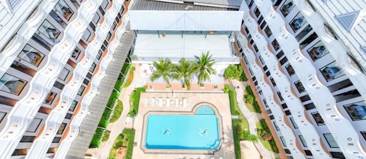 นี่เป็นหนึ่งในที่พักไม่กี่แห่งของย่านนี้ที่มีสระว่ายน้ำ