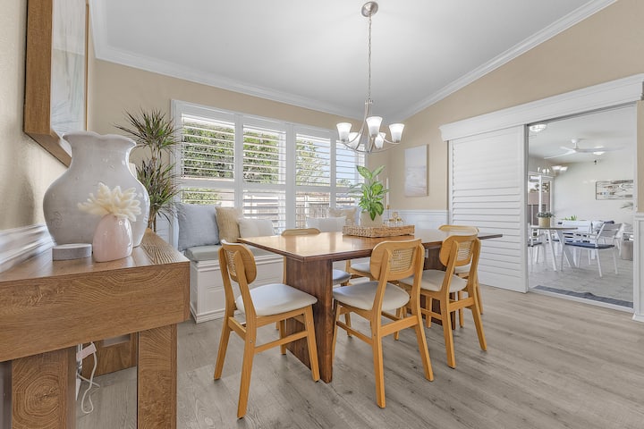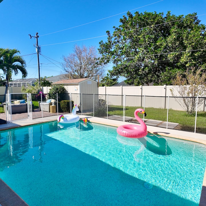 บ้านกว้างขวางนี้นอนได้ 8 คน มีเตียงคิงไซส์ 1 เตียง ควีนไซส์ 1 เตียง ทวิน 2 เตียง และเตียงโซฟา เหมาะสำหรับครอบครัวหรือกลุ่ม เพลิดเพลินกับสระว่ายน้ำอุ่นส่วนตัว เตาย่าง ปิงปอง ฟุตบอลโต๊ะ และโต๊ะพูลขนาดเล็ก ตั้งอยู่ใกล้กับฟอร์ตไมเออร์สและชายหาดที่สวยงาม ในย่านที่ปลอดภัยและเงียบสงบ พร้อมเข้าถึงร้านอาหาร สถานที่ท่องเที่ยว และความสนุกกลางแจ้งได้ง่ายๆ การผสมผสานที่ลงตัวระหว่างความสะดวกสบายและความบันเทิงสำหรับการพักผ่อนครั้งต่อไปของคุณในฟลอริดา!