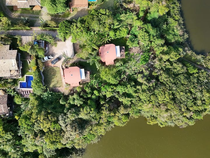 Seiva da Lagoa 1 – ที่พักผ่อนที่เป็นมิตรกับสิ่งแวดล้อม ห่างจากชายหาด 75 ม. และห่างจากใจกลางเมือง 500 ม. บ้านที่ยั่งยืนบนที่ดินขนาด 3,000 ตร.ม. ล้อมรอบด้วยธรรมชาติ มีวิวทะเลและลากัวดูเมียว รองรับได้สูงสุด 6 คน มี 2 ห้องนอนและ 2 ห้องน้ำ ห้องครัวที่มีอุปกรณ์ครบครัน ลานระเบียงกว้างขวางพร้อมเตาปิ้งย่าง Wi-Fi ความเร็วสูง และเครื่องปรับอากาศ ที่พักนี้มีบ้านที่เหมือนกัน 2 หลัง ให้เช่าเป็นรายบ้าน เพลิดเพลินกับสภาพแวดล้อมที่เฉพาะตัวและเงียบสงบ โดยเข้าถึงทะเลสาบได้โดยตรง Seiva da Lagoa 1 – บ้านอีโค่ใน Praia do Rosa ทำเลที่ยอดเยี่ยม: Seiva da Lagoa ห่างจากชายหาดเพียง 75 เมตรและห่างจากใจกลางเมือง 500 เมตร ให้ประสบการณ์ที่ไม่เหมือนใครท่ามกลางธรรมชาติ พร้อมวิวทะเลและ Lagoa do Meio ที่สวยงาม ผังบ้าน: ชั้นล่าง: - ห้องนอนใหญ่พร้อมเตียงควีนไซส์ เครื่องปรับอากาศ ตู้เซฟ และห้องน้ำส่วนตัว - ห้องนอนที่สอง: เตียงเดี่ยว 4 เตียง (เตียงสองชั้น 2 เตียง) และเครื่องปรับอากาศ - ห้องน้ำเพิ่มเติม ชั้นบน: - ห้องครัวพร้อมอุปกรณ์ครบครันพร้อมเตาบาร์บีคิวในร่ม - ห้องนั่งเล่นแบบเปิดโล่ง - ดาดฟ้ากว้างขวางพร้อมเตาปิ้งย่างกลางแจ้งและวิวทะเล สิ่งอำนวยความสะดวกและบริการ: - Wi-Fi ความเร็วสูง (500 เมกะไบต์) - ผ้าปูที่นอนและผ้าขนหนูคุณภาพสูง - เครื่องปรับอากาศในห้องนอนทุกห้อง - ที่จอดรถ 1 คันต่อบ้าน - ร่มชายหาดและเก้าอี้ชายหาด 4 ตัว สิทธิพิเศษในการเข้าถึง Lagoa do Meio เหมาะสำหรับการดื่มด่ำกับความสงบและความงามตามธรรมชาติของบริเวณนี้ Seiva da Lagoa ให้บริการรถรับส่งไปยังชายหาดได้โดยตรงและง่ายดายผ่านเส้นทางที่วนรอบลากัวดูเมยู ให้คุณได้เดินเล่นอย่างสงบสุขท่ามกลางธรรมชาติ ทางเดินไปยังชายหาดในเวลาเพียง 3 นาทีมีทิวทัศน์ที่สวยงามตลอดเส้นทาง หากต้องการไปยังใจกลางเมืองไพรยา โด โรซา หรือบ้าน คุณจะต้องขึ้นลงเนินเขาบนถนนหินกรวดซึ่งเป็นลักษณะทั่วไปของภูมิภาคนี้ ถนนสายนี้เป็นแบบชนบทและแคบเหมือนถนนสายอื่นๆ ในไพราโดโรซา และการเดินไปยังใจกลางเมืองใช้เวลาประมาณ 10 นาที ในใจกลางเมือง คุณจะพบบาร์ ร้านอาหาร และตลาด ทำให้ที่ตั้งของบ้านเหมาะสำหรับผู้ที่ต้องการเพลิดเพลินกับภูมิภาคนี้โดยไม่จำเป็นต้องใช้รถยนต์ระหว่างการเข้าพัก เราพร้อมให้บริการผู้เข้าพักเสมอ เพื่อให้แน่ใจว่าการเข้าพักของคุณสะดวกสบายและน่าพอใจที่สุด คุณสามารถติดต่อสื่อสารด้วยตนเองหรือผ่านข้อความได้ตลอดการเข้าพัก เป้าหมายของเราคือการให้ความช่วยเหลือเมื่อใดก็ตามที่จำเป็น และทำให้แน่ใจว่าผู้เข้าพักแต่ละคนจะได้รับประสบการณ์ที่ดีที่สุดที่ Seiva da Lagoa โดยมีความเป็นส่วน