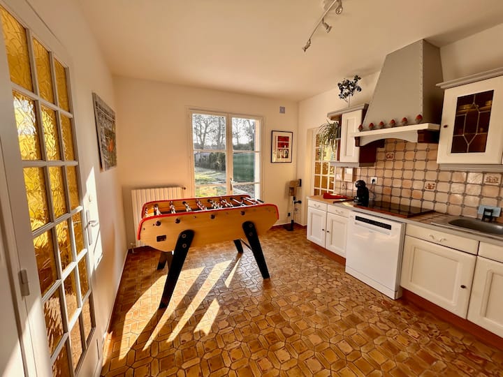 ห้องครัวขนาดใหญ่ที่มีอุปกรณ์ครบครัน (เตาแม่เหล็กไฟฟ้า – เครื่องล้างจาน – ตู้เย็นแช่แข็ง – กาต้มน้ำ – เครื่องชงกาแฟ Dolce Gusto – ไมโครเวฟ – เตาอบ – เครื่องปิ้งขนมปัง - เครื่องดูดฝุ่น – ผ้าชาและผ้าเช็ดมือ...) เพื่อเตรียมอาหารทั้งหมดของคุณและตั้งอยู่บนโต๊ะฟุตบอลสำหรับช่วงเวลาที่สนุกสนานและสนุกสนาน มีกาแฟชาน้ำตาลเกลือพริกไทยและน้ำมันมะกอกให้บริการฟรี